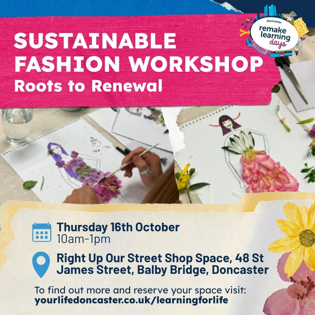 Are you curious about sustainable fashion and making a difference? Join us for our Roots to Renewal workshop—a friendly, hands-on introduction to upcycling and creative design! Discover real-life project examples, try eco-printing, create nature-inspired designs, and gain access to resources to carry on at home. Whether you’re new or experienced, everyone’s welcome—come along and get inspired!